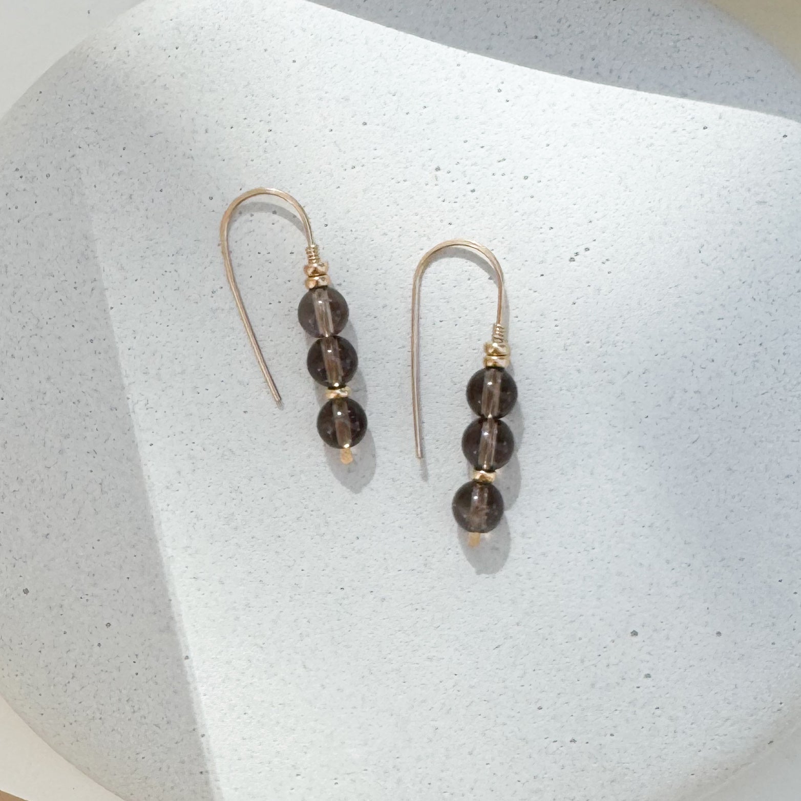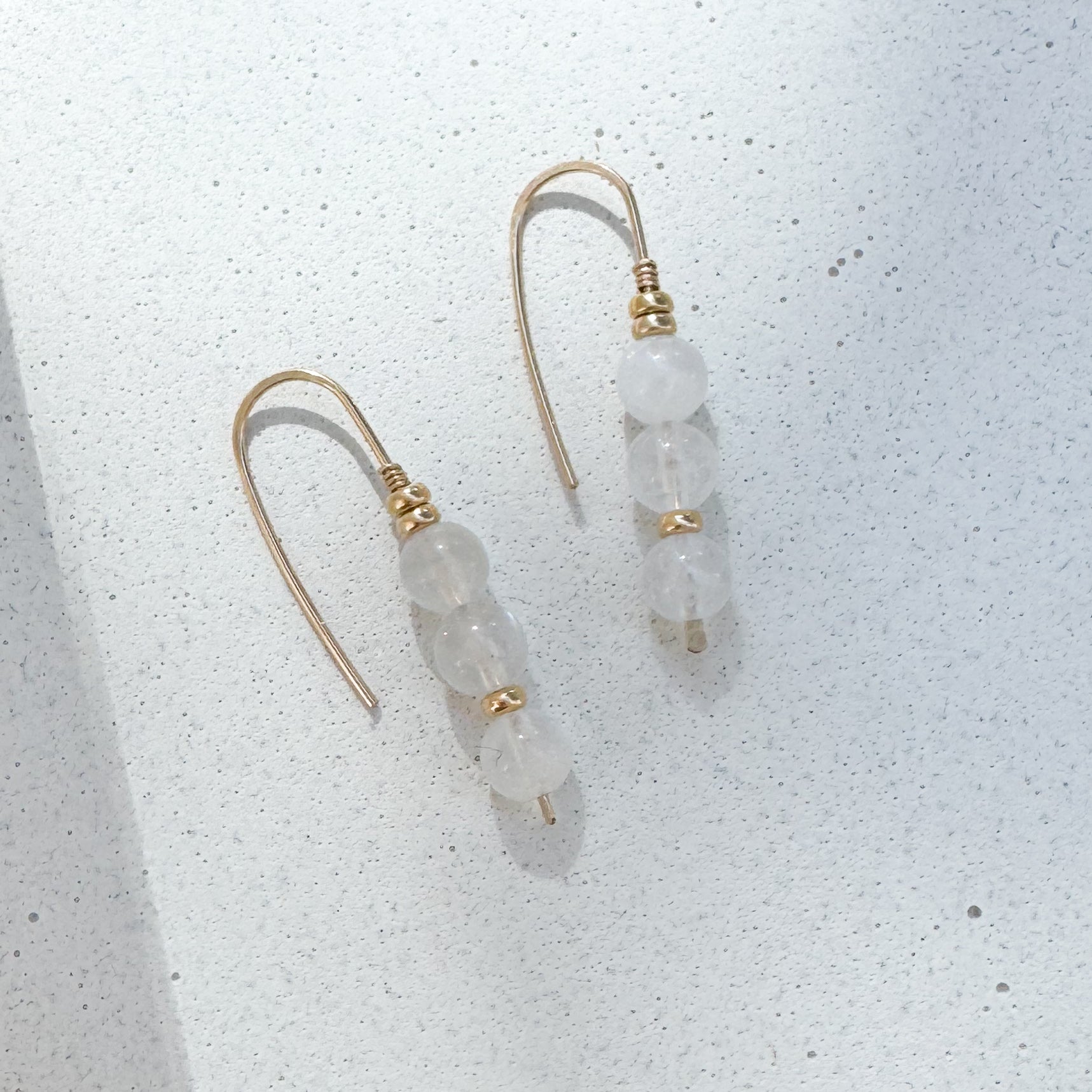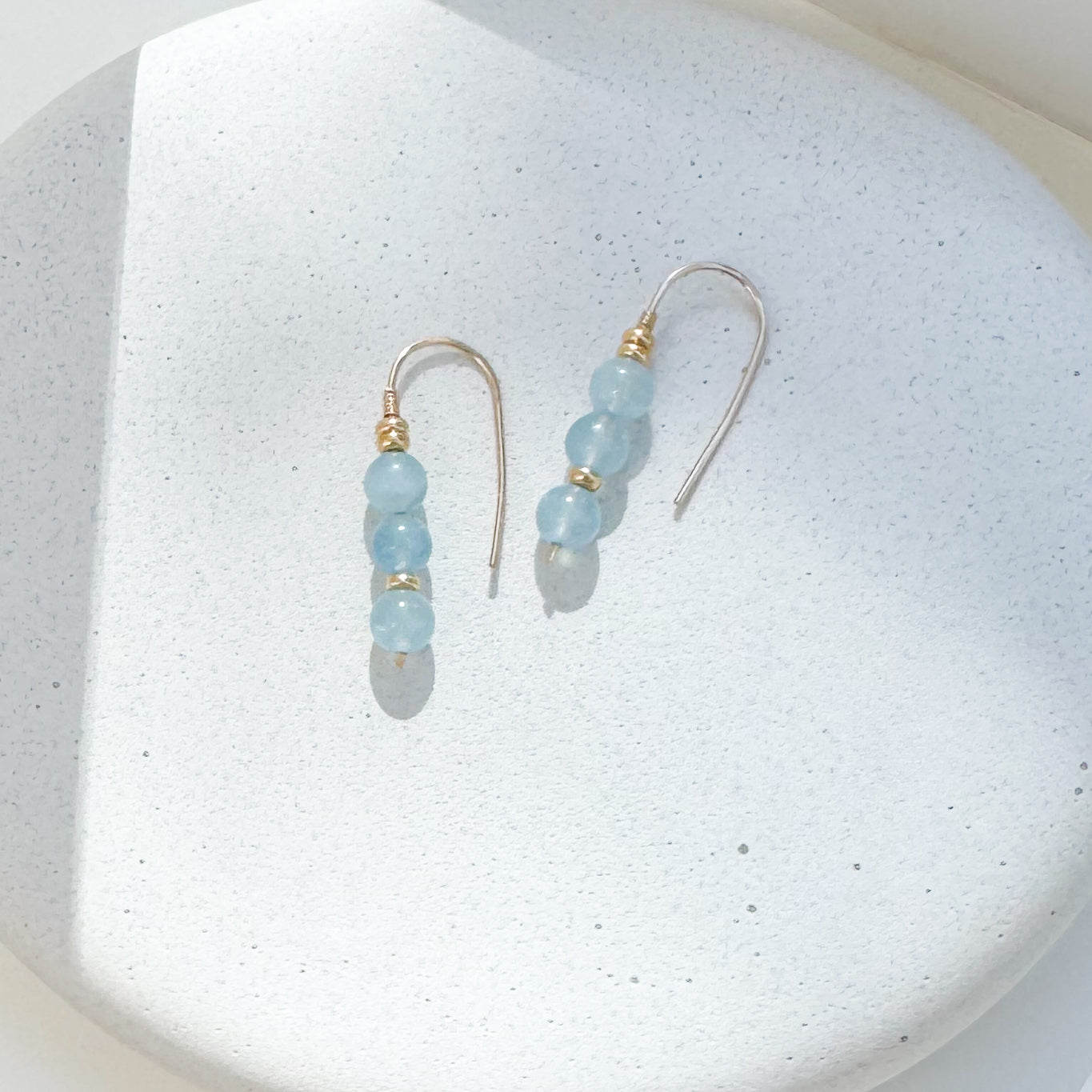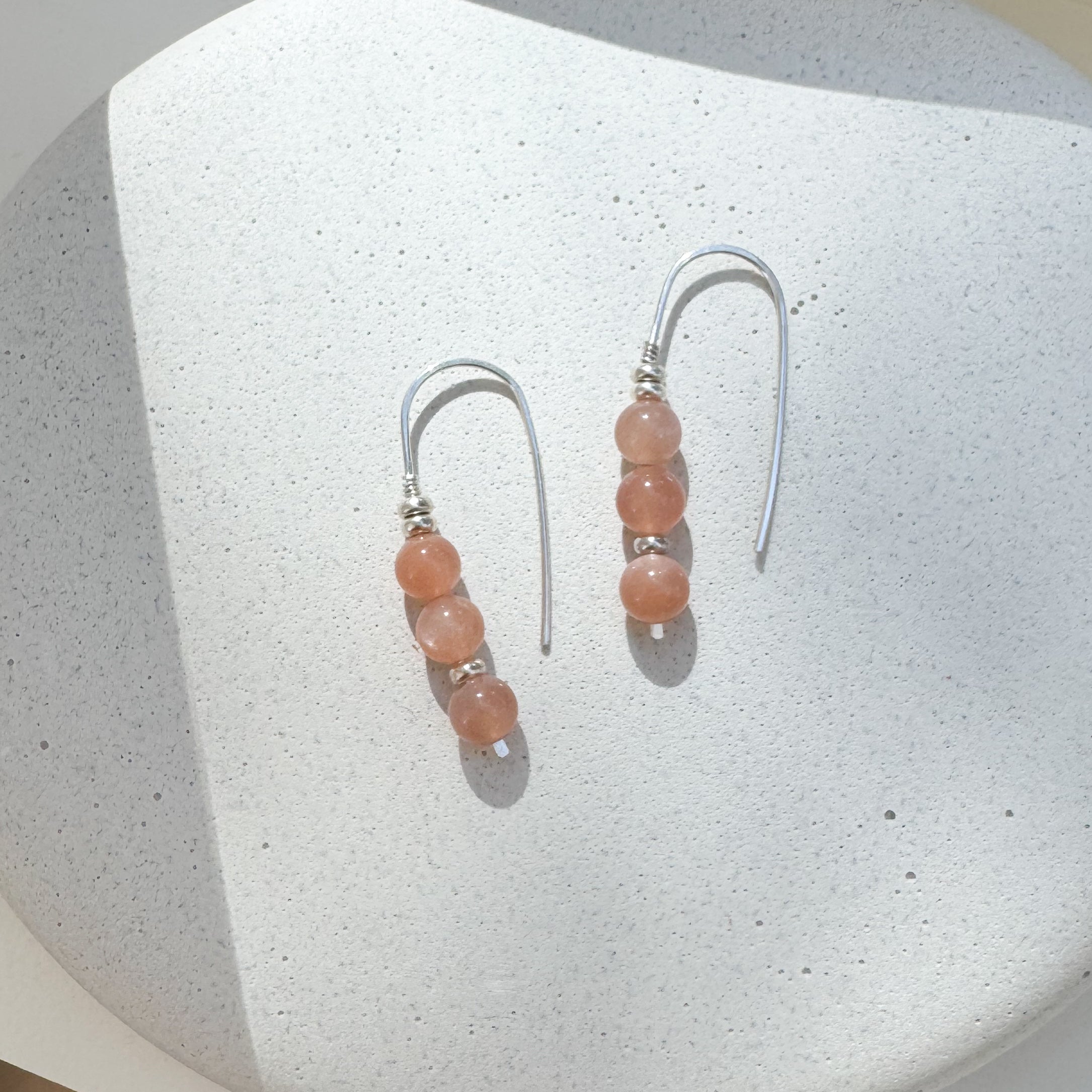 Each Arch Earring features smooth, hand-selected gemstones suspended on a graceful arc of 14k gold fill or sterling silver. They hang approximately 2 inches from the earlobe. Light, modern, and endlessly wearable—the perfect balance of minimal design and natural beauty.