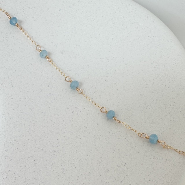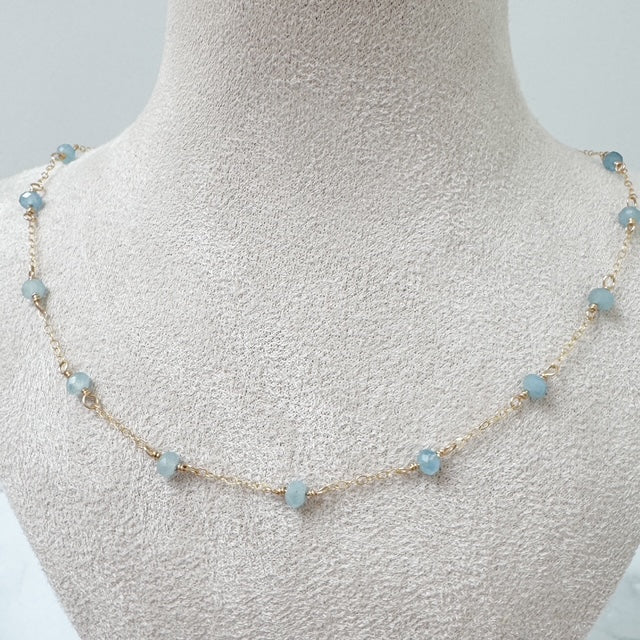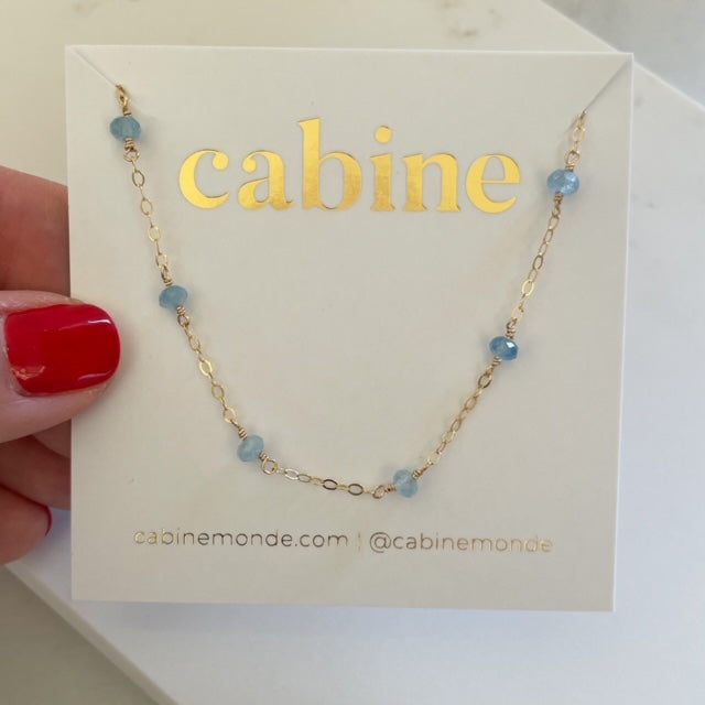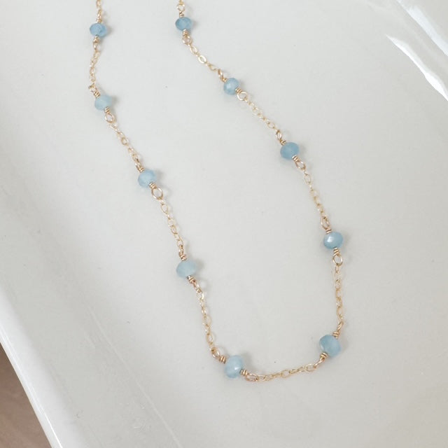 Introducing our stunning aquamarine crystal necklace on a delicate fine chain - the perfect accessory to elevate your style and promote a sense of calm!