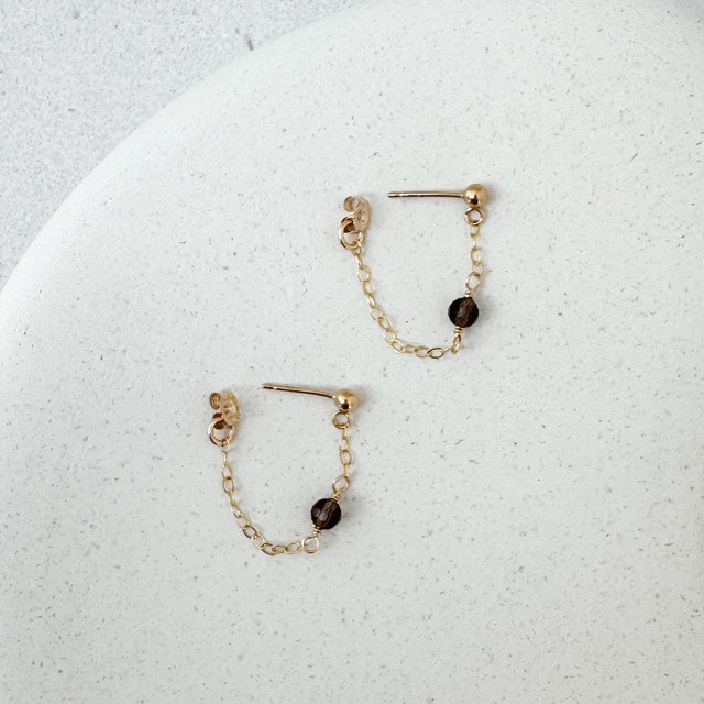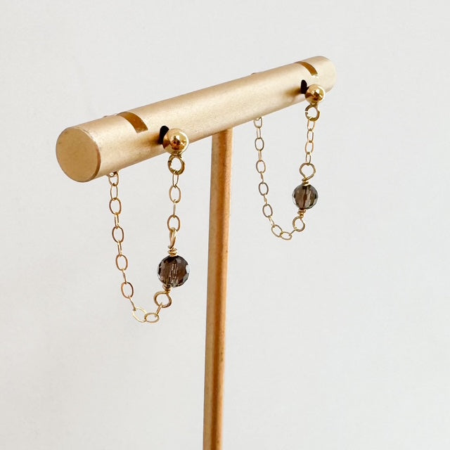 Details: faceted smoky quartz or pink tourmaline gemstones, approx. 4mm, lightweight chain drop design