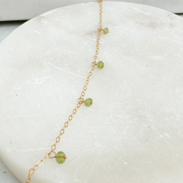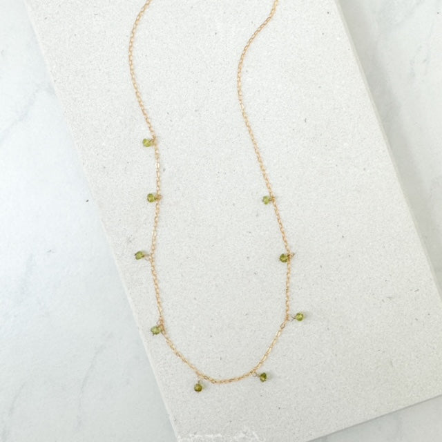 Bright 4mm faceted peridot beads bring a fresh pop of color to this delicate necklace. Choose 14k gold fill or sterling silver, in 16" or 18" lengths. Simple and easy to style, it’s an effortless way to add a hint of green to your look.