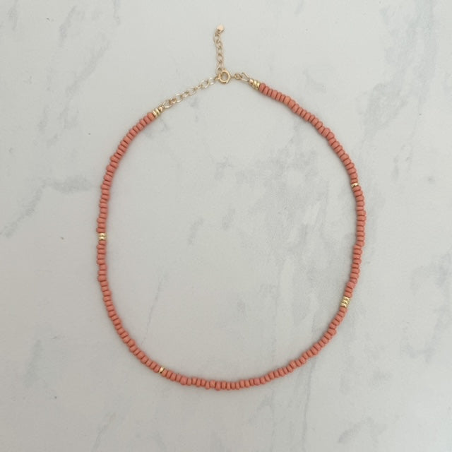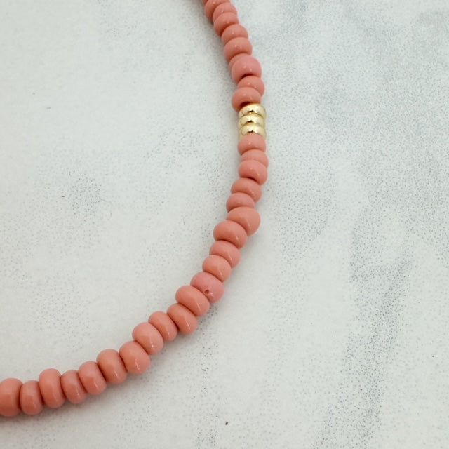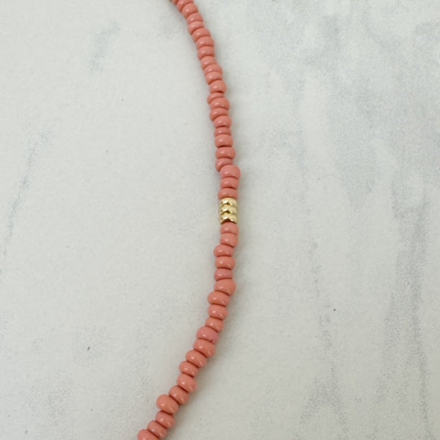 Add a pop of vintage charm to your collection with our limited-edition necklace, crafted from vibrant vintage glass beads from Ghana. Available in orange, pink, yellow, blue, and white, this 16" necklace (with a 2" extender) features 14k gold-filled findings, offering a touch of warmth and elegance to any look. Perfect for layering or wearing solo!